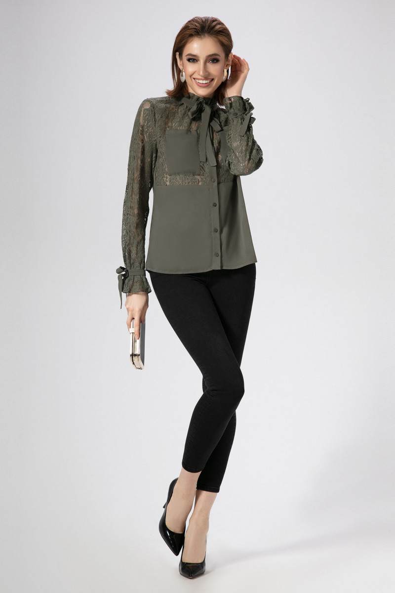 Невероятная нарядная блузка с отстёгивающимися завязками на рукавах и воротнике наверняка покорит сердце стильной и яркой девушки,для которой важно выглядеть потрясающе. Оригинальный крой , изысканное сочетание полупрозрачного кружева и текстиля,небросская стильная фурнитура выделяют эту блузку из множества других. Воротник-стойка,декорированный рюшей из кружева и пристёгивающейся лентой. Рукав кружевной,втачной, длинный,расширенный книзу и присборенный на планку с петлёй и пуговицей и рюшей по низу.Верхняя часть лифа из кружева.Стильные прямоугольные накладные карманы выполнены на уровне груди. Блузка прямого силуэта с удлинённой спинкой выглядит очень нарядно,но прекрасно подойдёт и как вариант для офиса.
