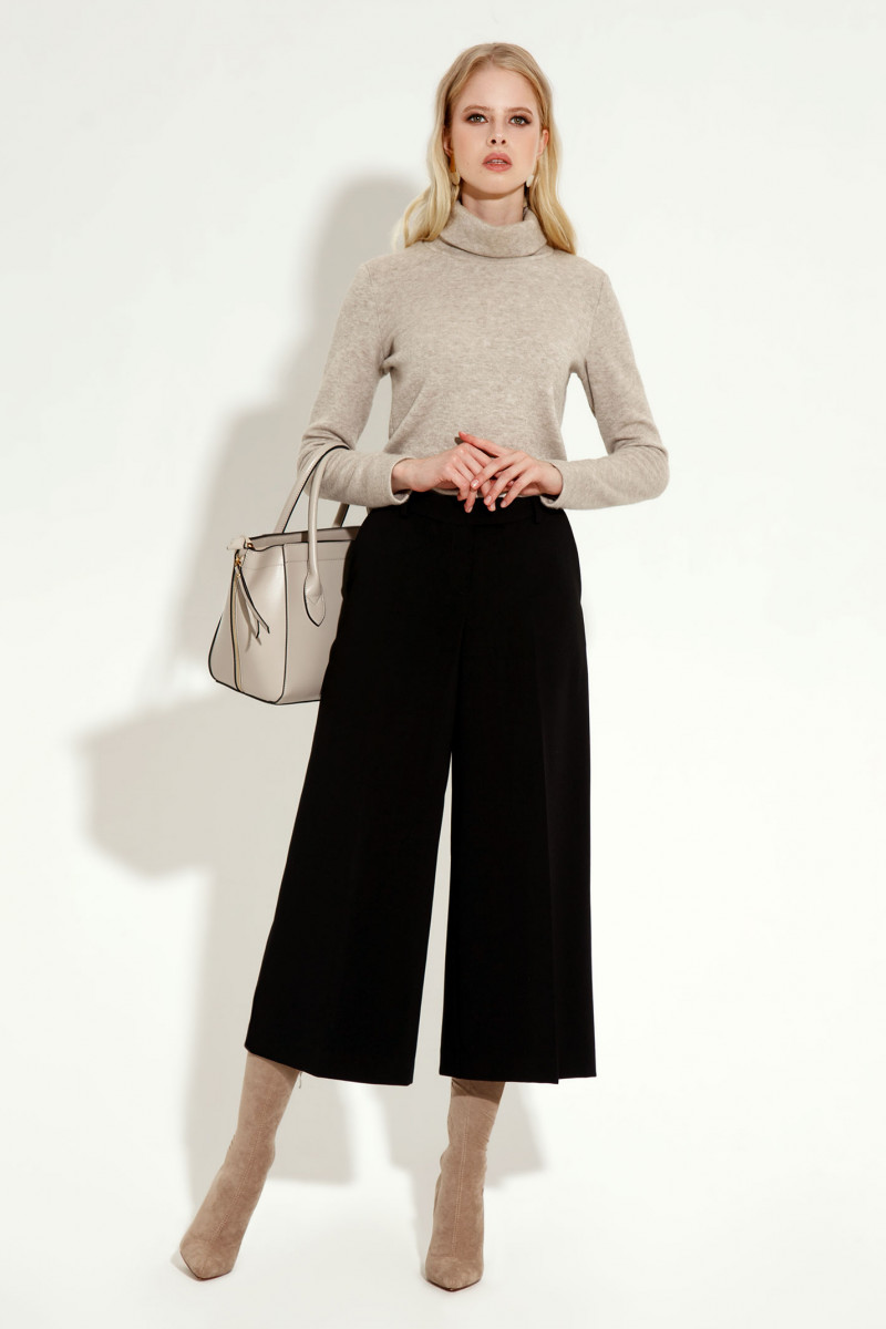 | 44 | Брюки: Высота посадки - 23,5см, Длина брюк без пояса - 80,5см, Длина по внутреннему шву - 61см, Ширина брючин сверху - 66см, Обхват брюк по низу - 68,5см, Ширина по бедрам - 49,5см, Ширина по талии - 36,5см; |