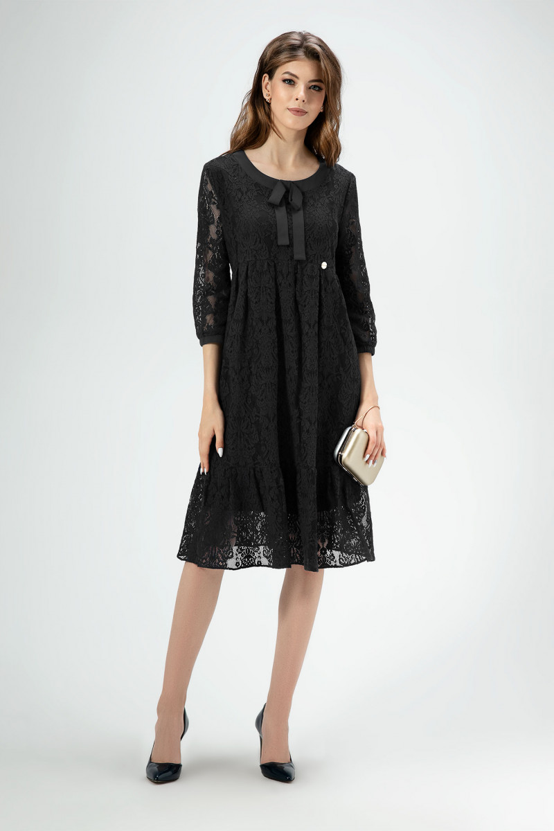 Невероятно красивое нежное платье,которое подарит чувство уверенности и заставит блистать его обладательницу на любом торжественном мероприятии. Сочетание красивого нежного кружева с мягкой вискозой выглядит невероятно нежно.Круглый вырез горловины декорирован нежным бантом из вискозы.Линия плеча приспущена.На уровне под грудью и чуть ниже линии бедра выполнены горизонтальные резы,Две нижние детали по верхнему срезу присборены. Силуэт платья трапецевидный и идеально подойдёт для любого типа фигуры.Прозрачные кружевные рукава,присборенные на планочку с резинкой по низу, подчеркнут хрупкость рук. Подкладочная часть короче кружевного платья.Это делает образ его обладательницы ещё более притягательным.