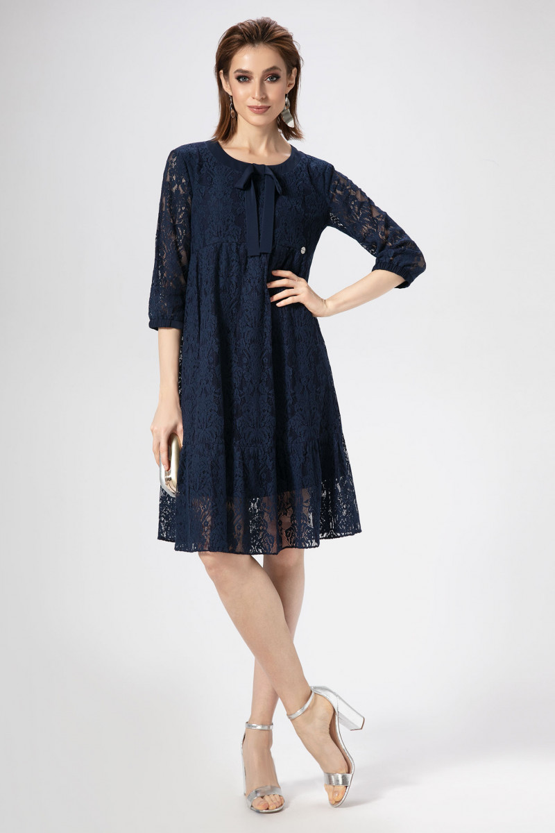 Невероятно красивое нежное платье,которое подарит чувство уверенности и заставит блистать его обладательницу на любом торжественном мероприятии. Сочетание красивого нежного кружева с мягкой подложкой втон выглядит невероятно нежно.Круглый вырез горловины декорирован нежным бантом из вискозы.Линия плеча приспущена.На уровне под грудью и чуть ниже линии бедра выполнены горизонтальные резы,Две нижние детали по верхнему срезу присборены. Силуэт платья трапецевидный и идеально подойдёт для любого типа фигуры.Прозрачные кружевные рукава,присборенные на планочку с резинкой по низу, подчеркнут хрупкость рук. Подкладочная часть короче кружевного платья.Это делает образ его обладательницы ещё более притягательным. Прекрасный вариант для любого торжественного случая.