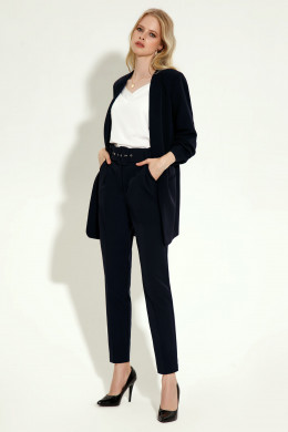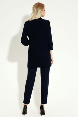 Стильный модный жакет в стиле "кэжуал". Это повседневный удобный и практичный жакет, который отлично сочетается как с джинсами, так и с брюками. Жакет удлиненный, без застежки, рукава длиной ниже локтя. По переду имеются карманы. Спинка со средним швом, который заканчивается шлицей. Жакет на подкладки.