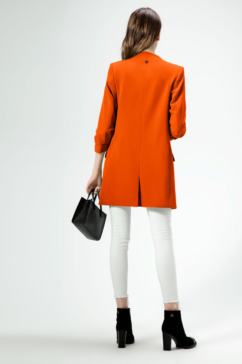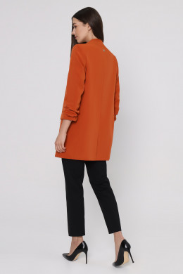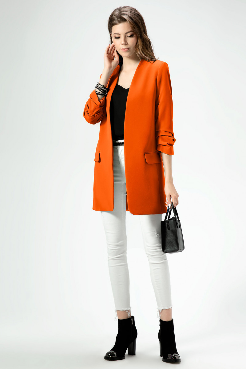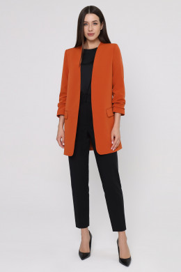 Стильный модный жакет в стиле "кэжуал". Это повседневный удобный и практичный жакет, который отлично сочетается как с джинсами, так и с брюками. Жакет удлиненный, без застежки, рукава длиной ниже локтя. По переду имеются карманы. Спинка со средним швом, который заканчивается шлицей. Жакет на подкладки.