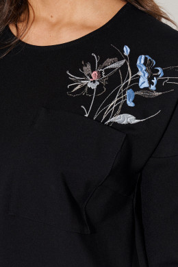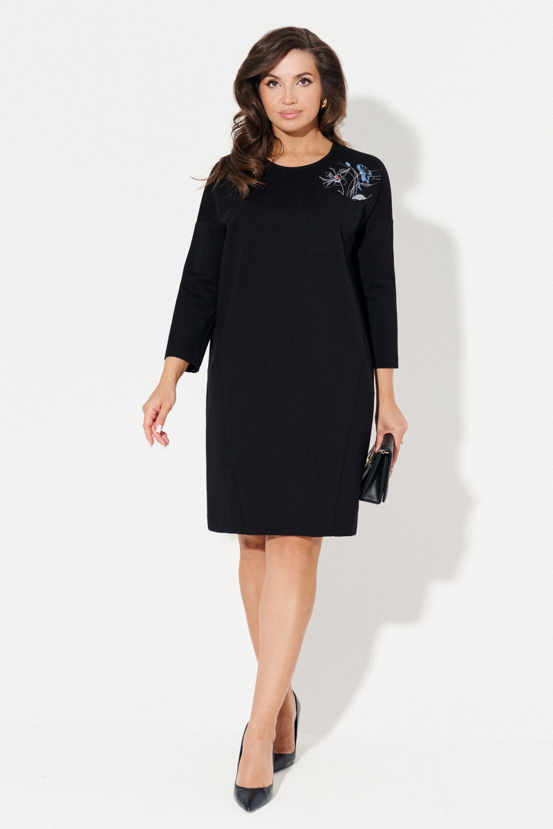 Стильное лаконичное платье из трикотажного полотна. Платье зауженное к низу, с круглым вырезом горловины по переду и фигурным вырезом горловины по спинки.По спинки имеется декоративная молния. Платье дополнено карманом по переду и изящной дизайнерской вышивкой.