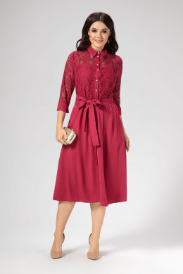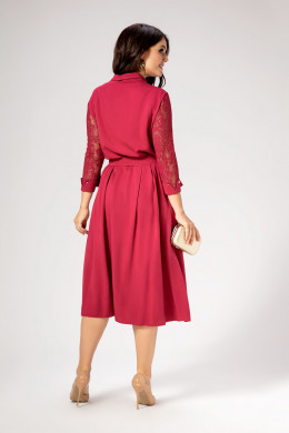 Очаровательное женственное платье с рубашечными воротником и застёжкой выполнено на сочетании кружевного и гладкого полотен.Отрезное по линии талии платье имеет прилегающего силуэта кружевной лиф и расклешоную книзу удлинённую юбку,верхний срез которой образует сверху 4 глубоких складки.В боковых швах юбки оформлены внутренние карманы.Длина рукава 3/4.По низу выполнен отрезной манжет из основной ткани ,который откладывается наверх и имеет разрез. На талии завязывается съёмный пояс из основной ткани.Платье невероятно стройнит,придаёт чувство уверенности в себе и дарит ощущение комфорта и лёгкости. Платье можно назвать нарядно-повседневным и безусловно великолепным для любого случая.