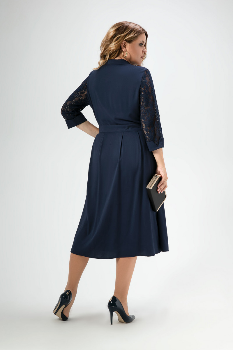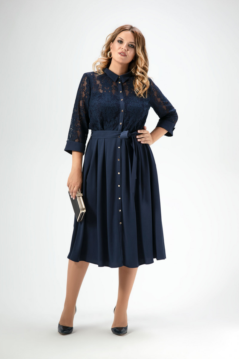 Очаровательное женственное платье с рубашечными воротником и застёжкой выполнено на сочетании кружевного и гладкого полотен.Отрезное по линии талии платье имеет прилегающего силуэта кружевной лиф и расклешоную книзу удлинённую юбку,верхний срез которой образует сверху 4 глубоких складки.В боковых швах юбки оформлены внутренние карманы.Длина рукава 3/4.По низу выполнен отрезной манжет из основной ткани ,который откладывается наверх и имеет разрез. На талии завязывается съёмный пояс из основной ткани.Платье невероятно стройнит,придаёт чувство уверенности в себе и дарит ощущение комфорта и лёгкости. Платье можно назвать нарядно-повседневным и безусловно великолепным для любого случая.