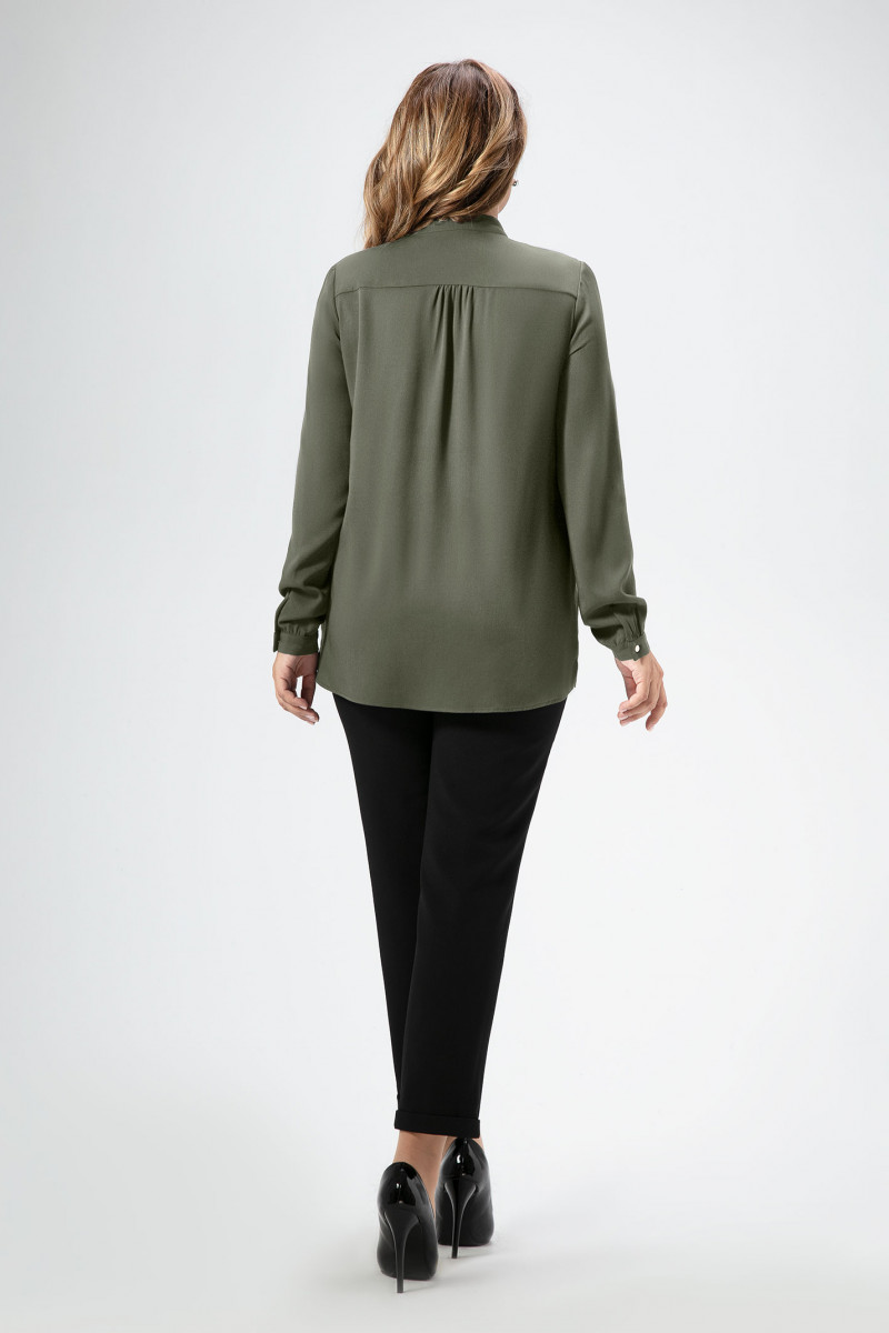 Нежная и романтичная повседневная блузка из вискозы подчеркнёт женственность своей обладательницы.Воротник в виде стойки,переходящей спереди в детали завязывающегося банта.Рукава втачные свободные,снизу присборены на узкий манжет с петлёй и пуговицей.Застёжка спереди центральная потайная .Изюминка блузки в нежной вышивке в виде цветка мака на центральной планке спереди. Блузка прямого силуэта с нагрудными вытачками выгодно подчеркнёт фигуру и украсит будни стильной и романтичной девушки.
