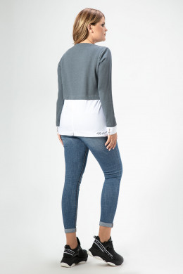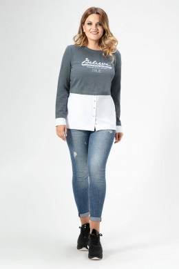 Стильный молодежный джемпер идеально подойдет тем, кто любит одеваться в стиле «кэжуал». Джемпер идеально сочетается с джинсами и подходит для повседневной носки. Джемпер создан на сочетании трикотажного хлопкового полотна и хлопковой сорочечной ткани, имитирующей двухслойность в одежде. Джемпер полуприлегающего силуэта с круглым вырезом горловины с длинными рукавами. Низ рукавов с приточными декоративными манжетами. В боковых швах джемпера имеются глубокие карманы. Джемпер дополнен оригинальной дизайнерской вышивкой по переду и внизу изделия по спинке.