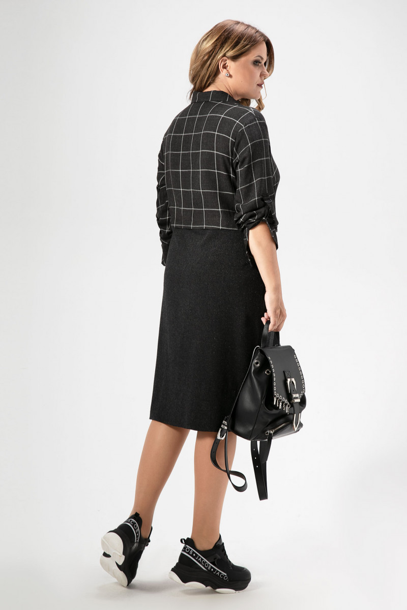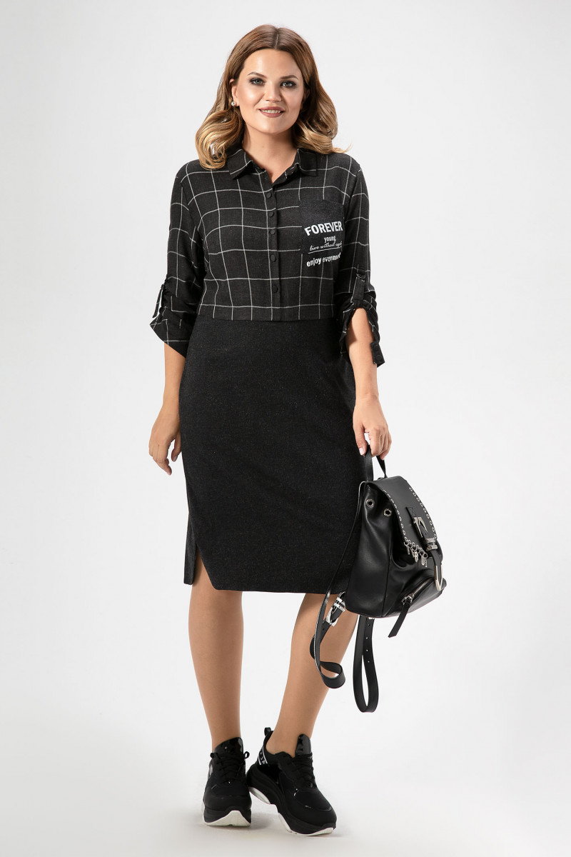 Стильное молодежное платье из вискозной ткани. Платье отрезное по талии, верхняя часть платья из ткани с рисунком в клетку.Платье прямого силуэта, с рубашечным воротником, застежка до подреза на петли и пуговицы. Рукава длинные на притачной манжете. На манжете две петли и пуговицы. На рукавах имеются паты. Низ платья закругленной формы, обработанный широкой обтачкой. В боковых швах карманы. На левой части платья имеется накладной карман. Платье дополнено шрифтовой печатью по карману. Такое платье отлично сочетается как в деловом стиле под каблуки, так и спортивном под кроссовки. Отличный модный вариант на каждый день.