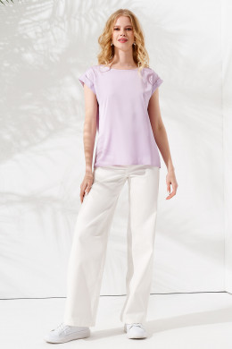 Блузка женская в офис имеет неформальный вид, в отличие от традиционной одежды в деловом стиле. Проймы рукавов украшены отложными манжетами. Лаконичный дизайн позволяет носить различные аксессуары, жакеты и пиджаки, тем самым меняя повседневные образы.