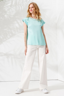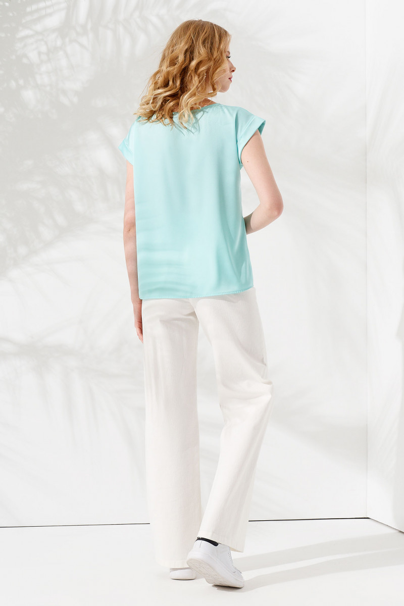 Блузка женская в офис имеет неформальный вид, в отличие от традиционной одежды в деловом стиле. Проймы рукавов украшены отложными манжетами. Лаконичный дизайн позволяет носить различные аксессуары, жакеты и пиджаки, тем самым меняя повседневные образы.