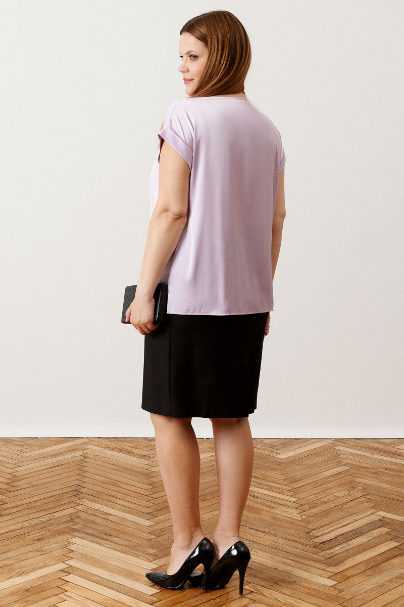 Лаконичная базовая блузка из тонкой струящейся ткани с небольшим блеском. Блузка полуприлегающего силуэта с круглым вырезом горловины, с нагрудными вытачками. Горловина обработана внутренней окантовкой. Проймы блузки обработаны декоративными отложными манжетами. Такая универсальная базовая блузка станет неотъемлемым дополнением вашего гардероба.