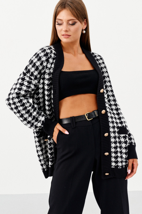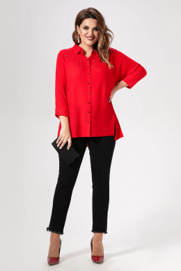 Стильная блузка из шифона, свободного силуэта, с центральной планкой на петли пуговицы, с фигурными рельефами, акцент сделан на металлические бусинки, линия низа фигурной формы. Спинка с фигурными рельефами. Рукава 7/8 с манжетами. Новый тренд в одежде " девушка в черном" стал частью такого понятия как сексуальность, грациозность. Создать стильный, свободный образ помогут яркие аксессуары.