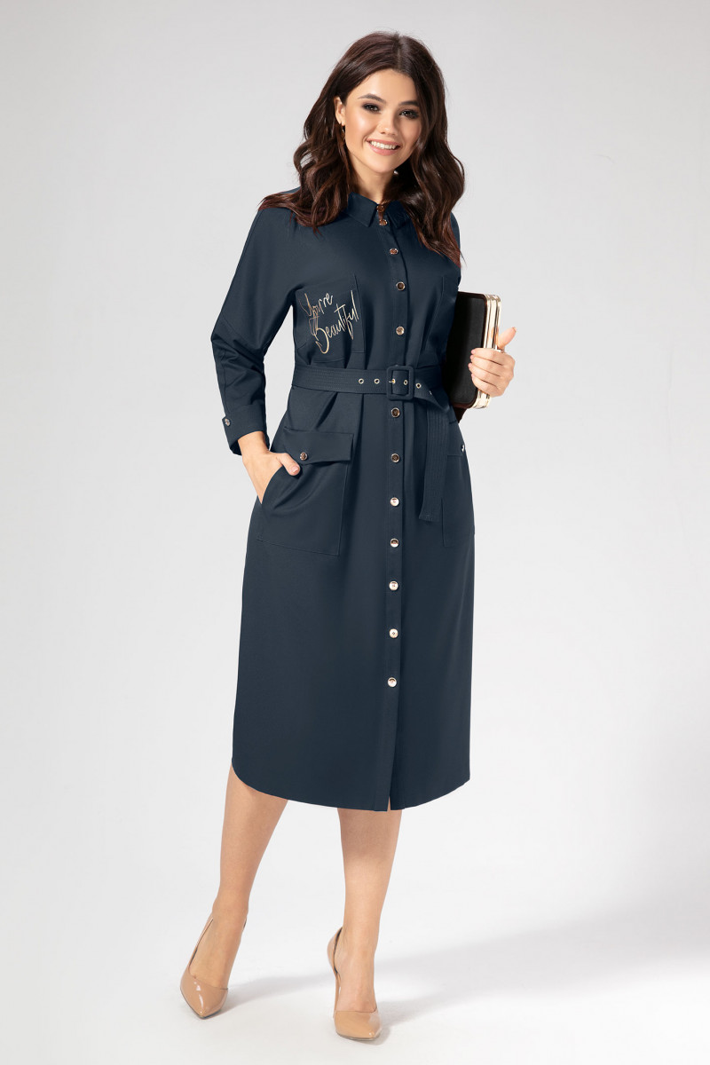 Практичное и одновременно элегантное и эффектное платье-рубашка из мягкой немнущейся и лёгкой в уходе ткани.Силуэт прямой. Застёжка спереди на петли-пуговицы.Воротник рубашечный на стойке. Линия плеча спущена,Рукав свободный,заужен книзу. По низу выполнен притачной манжет,отворачивающийся вверх и декорированный пуговицей. От среза горловины до нижнего среза рукава вдоль плечевого шва выполнен втачной узкий лампас из основной ткани,что придаёт платью динамичность и спортивность. По переду выполнены два накладных кармана по лифу и два накладных кармана фигурной формы ниже талии. У нижних карманов боковые входы и клапаны,декорированые пуговицами. Один верхний карман декорирован принтом в цвет фурнитуры.По спинке выполнена встречная складка,застроченная от среза горловины.На талии расположен пояс из основной ткани,застёгивающийся на пряжку с язычком .Платье идеально подойдёт как вариант на каждый день и в офис активной и яркой девушке,которая ценит в вещах комфорт и стиль.