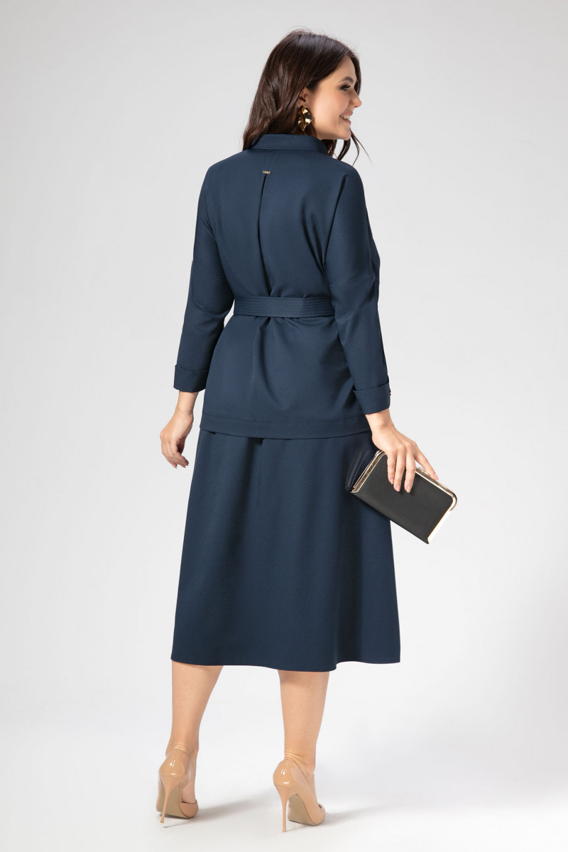 Жакет женский выполнен в стиле сафари из мягкой и немнущейся,очень лёгкой в уходе и практичной при эксплуатации ткани. Жакет прямого силуэта с нагрудными вытачками .На талии расположен пояс из основной ткани. Застёжка жакета спереди на петли-пуговицы.Воротник рубашечный на стойке. Линия плеча спущена,Рукав свободный,заужен книзу. По низу выполнен притачной манжет,отворачивающийся вверх и декорированный пуговицей. От среза горловины до нижнего среза рукава вдоль плечевого шва выполнен втачной узкий лампас из основной ткани,что придаёт образу динамичность и спортивность. По переду выполнены два накладных кармана по лифу и два накладных кармана фигурной формы ниже талии. У нижних карманов боковые входы и клапаны,декорированые пуговицами. Один верхний карман декорирован принтом в цвет фурнитуры.По спинке выполнена встречная складка,застроченная от среза горловины .