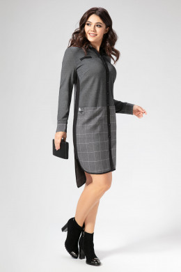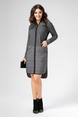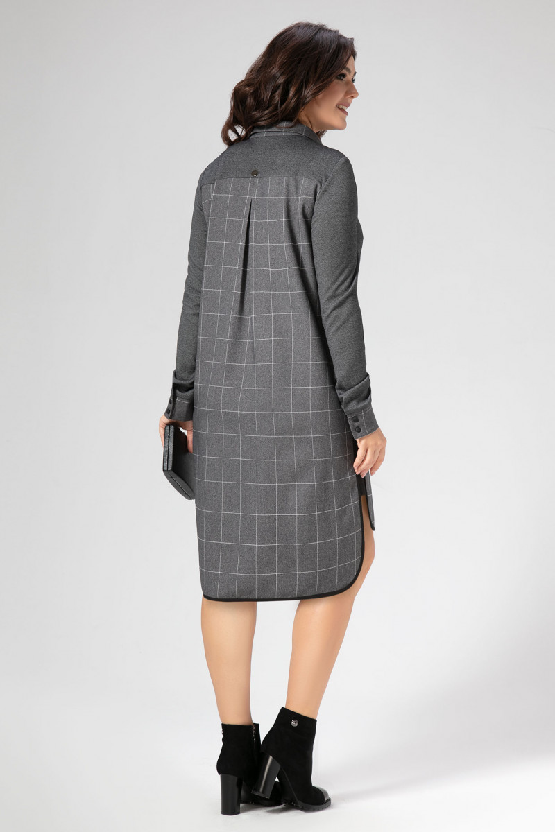 Стильное графичное платье-рубашка со вставками по бокам.Платье выполнено из мягкой ,пластичной. немнущейся вискозной ткани в сочетании с ласковым на ощупь трикотажем.Силуэт платья прямой.Спинка удлинена относительно переда. Рукав длинный с отрезным манжетом по низу. Рубашечный воротник, планка с петлями и пуговицами ,спинка и нижняя деталь переда из текстиля в ненавязчивую клетку.Нижний и боковые срезы переда и спинки окантованы бейкой чёрного цвета. Спереди в горизонтальном шве стачивания деталей выполнены два внутренних кармана.Платье сочетает в себе повседневность и спортивность,поэтому идеально подойдёт ,как вариант на каждый день и украсит будни его обладательницы,подарит чувство комфорта и лёгкости.
