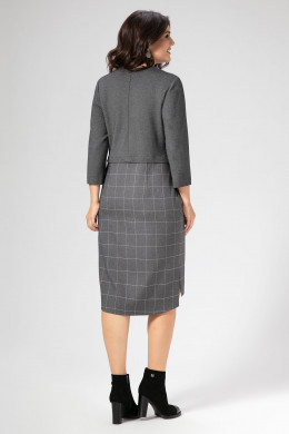 Осеннее женское платье будет прекрасным вариантом для девушки как на каждый день,так и в офис. Изделие сочетает в себе две ткани:мягкий немнущийся текстиль в клетку и трикотаж,обеспечивающий комфорт и эластичность. Силуэт платья прямой и немного приталенный.Вырез горловины круглый.Застёгивается сзади на потайную молнию в среднем шве. Рукав втачной ,длина 3/4 .Платье отрезное на уровне чуть выше талии.По переду выполнены накладные карманы с боковым входом,что очень удобно.по рукавам ,плечам и по переду выполнены врезные лампасы из основной ткани,которые визуально стройнят фигуру и придают образу спортивность.Линия низа неровная.Сзади платье длиннее. По переду платья и по карману выполнены графичные эффектные принты.