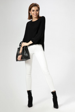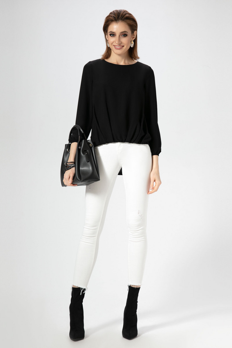 Стильная блузка, свободного силуэта, горловинка круглая , линия низа на резинке, от линии низа мягкие односторонние складки, Спинка с кокеткой и складкой от нее, спинка длиннее детали переда, Руква длинные в низу на резинке. Разнообразить лук помогут яркие аксессуары. Шикарный образ, как по случаю так и без него.