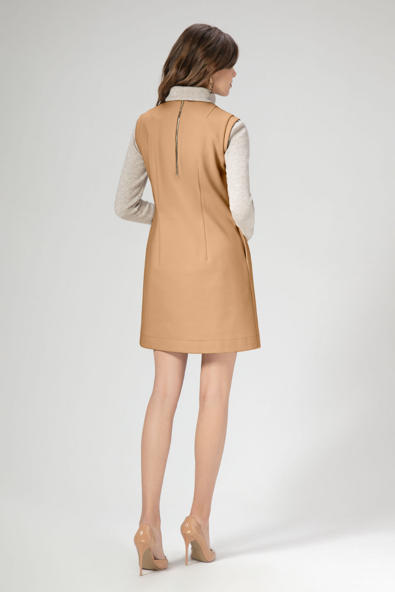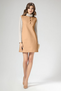 Стильное платье полуприлегающего силуэта слегка расширенное к низу, с круглым вырезом горловины и планкой от нее, на планке пуговицы обтянутые основной тканью, платье с нагрудными вытачками, в боковых швах карманы. Спинка с талиевыми и плечевыми вытачками, от головины металлическая молния. Рукава крылышки. Хороший вариант как для офиса, так и для светского мероприятия.