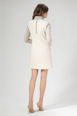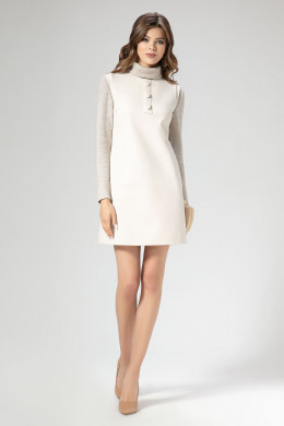 Стильное платье полуприлегающего силуэта слегка расширенное к низу, с круглым вырезом горловины и планкой от нее, на планке пуговицы обтянутые основной тканью, платье с нагрудными вытачками, в боковых швах карманы. Спинка с талиевыми и плечевыми вытачками, от головины металлическая молния. Рукава крылышки. Хороший вариант как для офиса, так и для светского мероприятия.