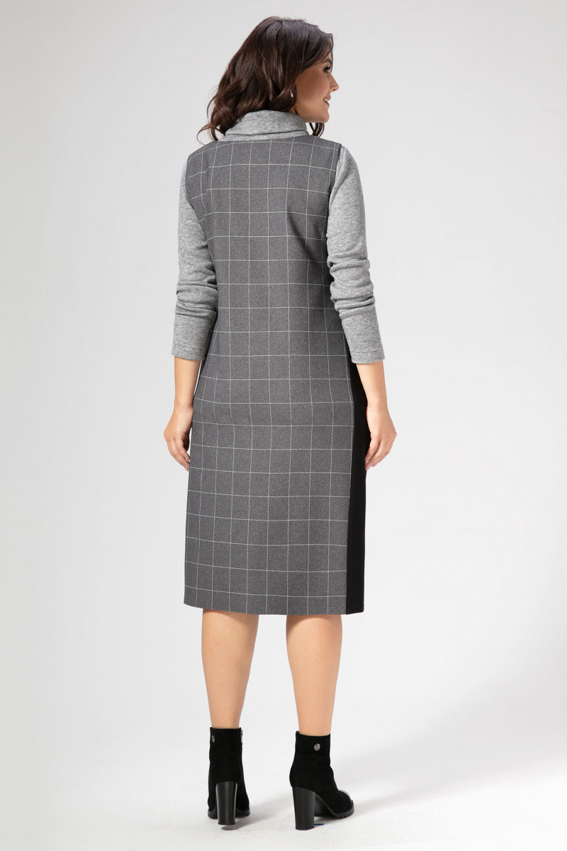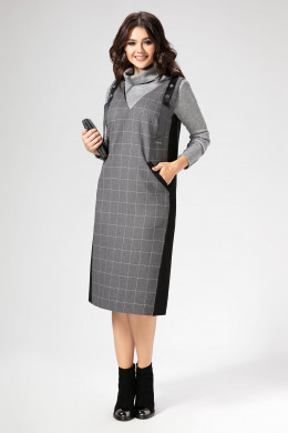 Отличный сарафан на каждый день в офис выполнен из мягкого вискозного полотна.Прекрасно сочетается с рубашкой или тонким джемпером.Благодаря изящной и ненавязчивой клетке в рисунке, прямому силуэту,слегка расширенному книзу, и трикотажным вставкам по бокам сарафан визуально вытягивает фигуру и при этом максимально комфортен в эксплуатации.Вырез горловины глубокий, V-образный.Лиф декорирован репсовой лентой с кнопками и зажимами по низу. По переду выполнены косые прорезные карманы с листочкой.