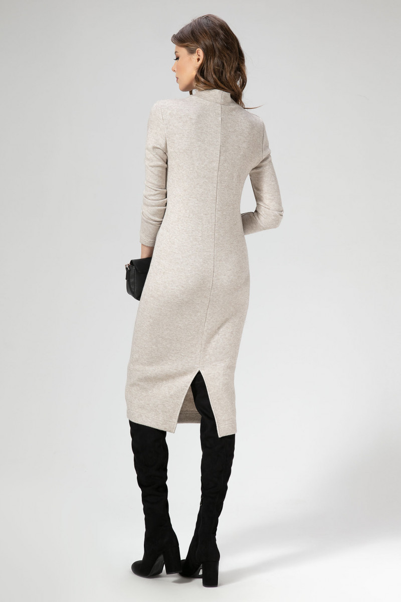Стильное молодежное платье из мягкого уютного трикотажного полотна. Платье полуприлегающего силуэта, с длинными рукавами, с воротником стойка. Спинка платья со средним швом, который заканчивается разрезом. Такое платье отлично сочетается как и с романтическими сапогами, так и с короткими ботинками без каблука, создавая стильный осенний образ.