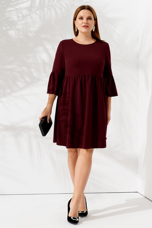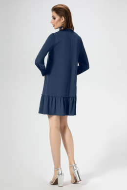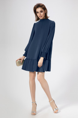 Нарядное стильное молодежное платье из струящейся ткани. Платье расширенного силуэта, с длинными рукавами, с воротником стойка. Застежка на потайную молнию в среднем шве спинки. По переду платье имеется декоративный разрез по горловине. Низ платья с широким воланом со сборкой. Очень модное и очень стильное платье отлично подойдет для торжественных случаев.