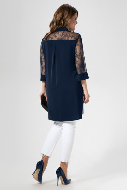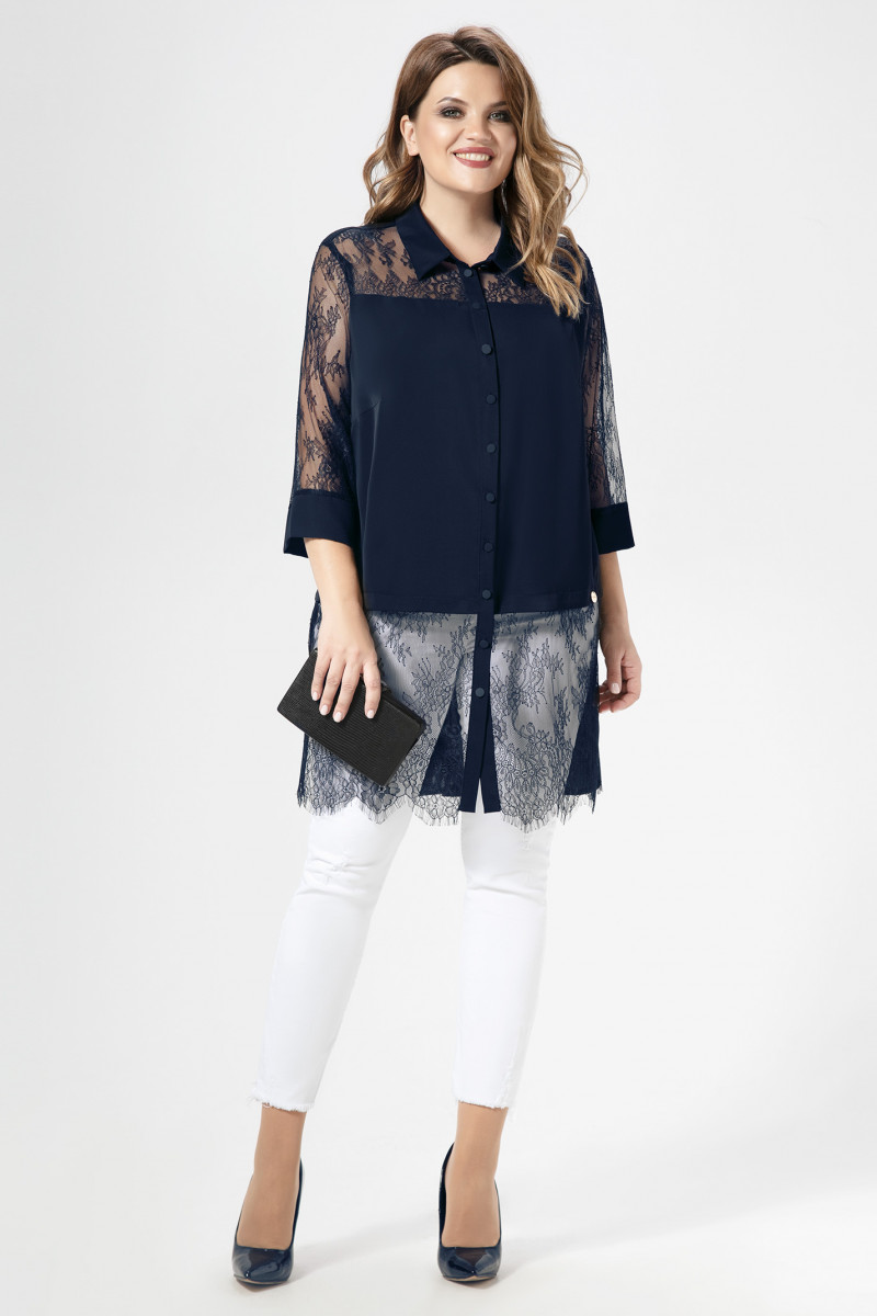 Нарядная стильная блузка из струящейся ткани в сочетании с тонким французским кружевом. Блузка прямая, удлиненная, с рукавами длиной ниже локтя, с центральной застежкой на петли и пуговицы. по низу рукавов имеется широкая притачная манжета. По переду и по спинки кокетки, выполнены из кружева. По бокам блузки имеются разрезы. Удлиненная блузка отличный нарядный вариант, который всегда можно надеть, как с классическими брюками или с белыми джинсами. вВ сочетании со светлыми брюками вы будите выглядеть очень стильно и нарядно.
