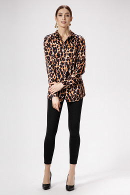 Бесспорным трендом этого года будет леопардовый принт, стильная блузка из вискозной ткани. Блузка полуприлегающего силуэта, с центральной планкой на петли пуговицы, с двумя карманами по линии груди, в плечевом шве декоративная тесьма со стразами. Спинка с кокеткой и встречными складками от кокетки. Рукава втачные, длинные с притачными манжетами на петли пуговицы. Все эксперименты с блузкой априори будет выглядеть стильно и непревзойденно, благодаря оригинальному принту создаст потрясающий образ для уверенной в себе девушке.