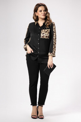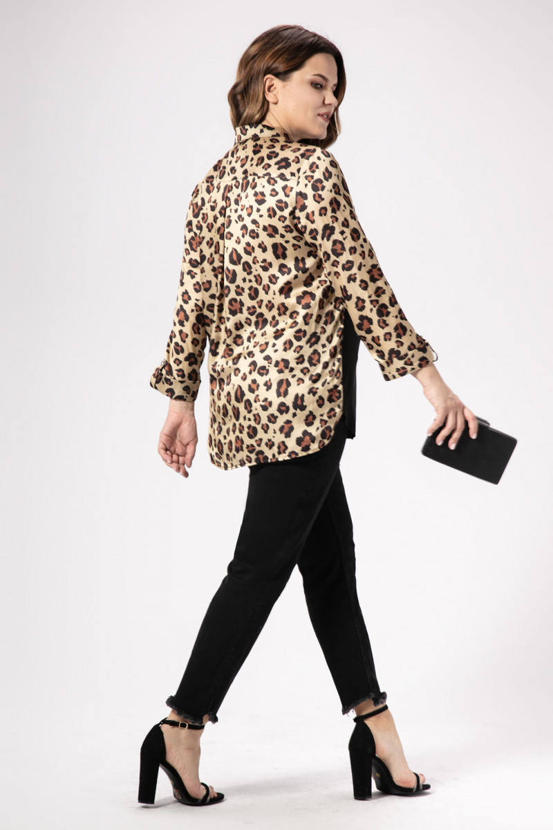 Бесспорным трендом этого года будет леопардовый принт, стильная блузка из полувискозной ткани. Блузка полуприлегающего силуэта, с центральной планкой на петли пуговицы, деталь переда черного цвета, карман по линии груди, ткань принтованая "леопард", над карманом декоративная тесьма со стразами. Спинка с кокеткой и встречными складками от кокетки, спинка "леопардовый" принт. Рукава втачные, длинные с притачными манжетами на петли пуговицы. Все эксперименты с блузкой априори будет выглядеть стильно и непревзойденно, благодаря оригинальному принту создет потрясающий образ для уверенной в себе девушке.