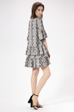 Прекрасное коктейльное платье из вискозной, дышащей, немнущейся ткани,которое также может радовать и как вариант на каждый день. У платья свободный трапецевидный силуэт и круглый вырез горловины.Рукав втачной декорирован валаном и присборен снизу на узкий манжет с петлёй-пуговицей.По низу платья выполнены два притачных валана,придающих платью особую женственность и очарование.По спинке выполнен неглубокий разрез с навесной петлёй и пуговицей на ножке. Такое платье непременно украсит свою обладательницу и подарит ей чувство лёгкости и комфорта в тёплый летний день.
