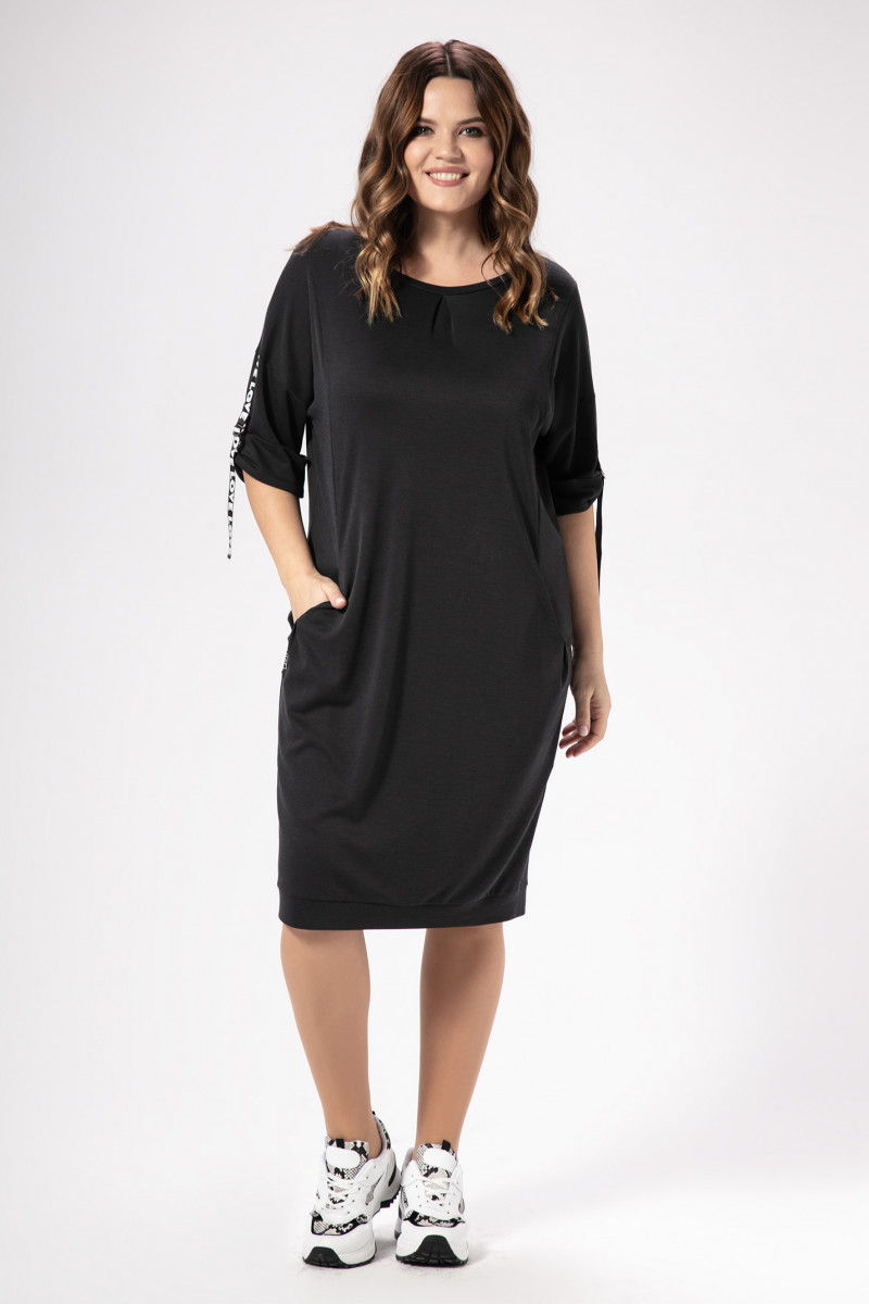 Струящееся и женственное платье выполнено из мягчайшего и очень приятного на ощупь вискозного трикодажа. Приятный коконообразный силуэт выгодно подчёркивает достоинства фигуры и скрывает недостатки. Пройма рукава углублена и линия плеча приспущена,что придаёт силуэту дополнительную мягкость.Рукав выше локтя .Низ рукава подвёрнут и образует манжет. По центру рукава настрочен лампас с полукольцами по низу,которые позволяют регулировать степень стянутости рукава. Вырез горловины круглый, с притачной планкой по краю. Срез горловины по центру образует сборку. Также по переду платья выполнены отрезные бочки фигурной формы в которых оформлены внутренние карманы.От кармана выполнены встречные складки. Но низу платья выполнена притачная планка.Идеальное платье на каждый день для стильной и энергичной девушки.