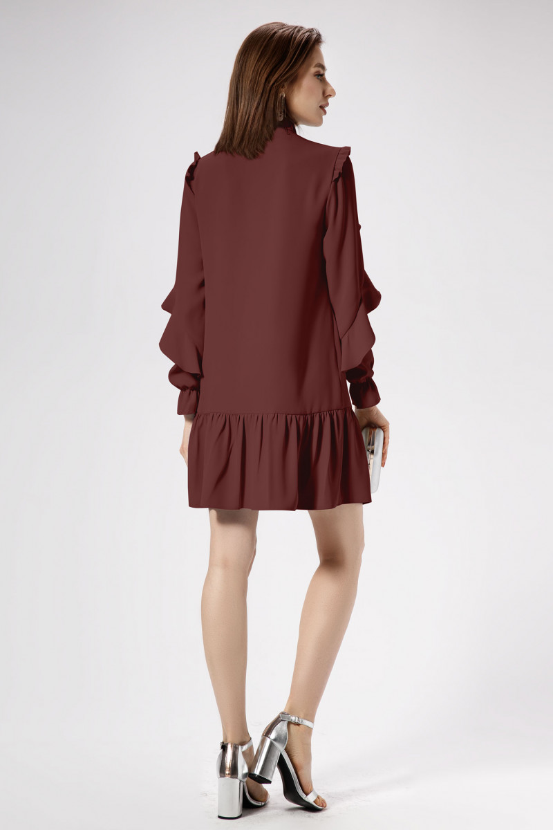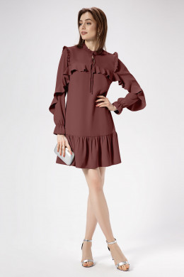 Легкость, романчтичность, очаровательность- это то, что объединяет обладательницу этого платья . Эффектное платье из струящейся ткани, полуприлегающего силуэта, слегка расширенное к низу, с рюшей по горловине и тесьмой завязывающейся на бантик , с наргудными вытачками, отрезное по линии бедер, с кокеткой и рюшей от нее, плавно переходящей в рукав, рукава втачные по окату со сборкой рюша, в нижней детали рукава резинка собранна в волан. Спинка отрезная по линии бедер. Платье создано для романтичных и изящных девушек, нет никаких сомнений в том , что обладательница этого платья, будет выглядеть безупречно.