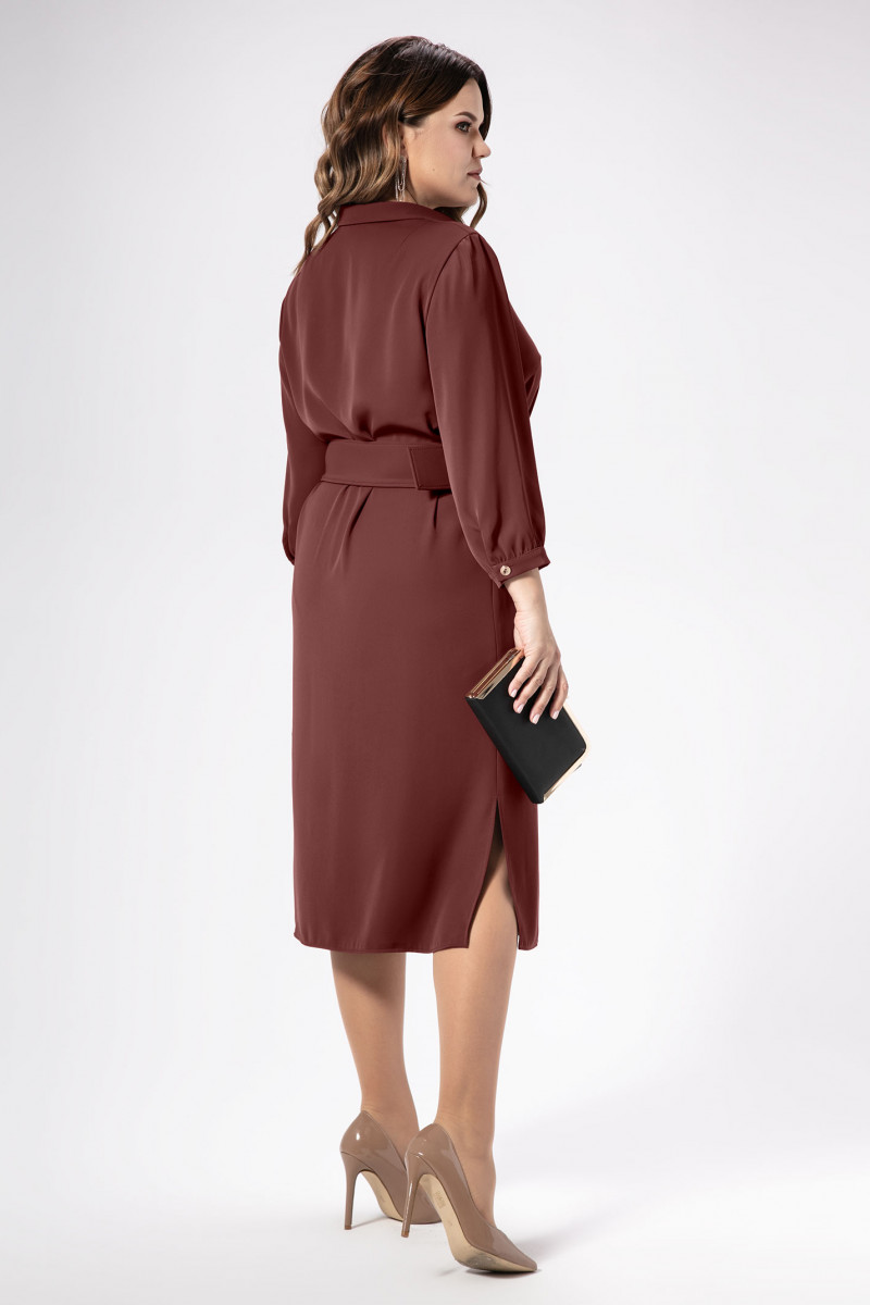Стильное платье полуприлегающего силуэта, с центральной планкой на петли пуговицы, с нагрудными вытачками, в боковых швах разрезы от линии низа. Спинка с плечевыми вытачками. Рукава 7/8 книзу со сборкой и притачной манжетой, на петли пуговицы. В комплект входит ремень. Отличный вариант для торжества и на каждый день. Элегантный образ- классика всегда и везде, изящество, неповторимый шарм.