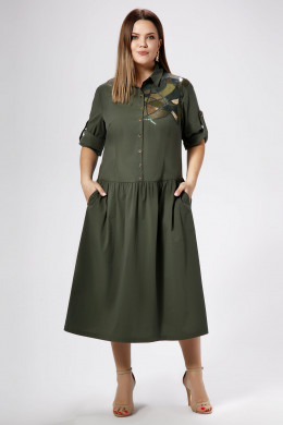 Женское платье большого размера в стиле оверсайз решит проблему с подбором универсального летнего наряда. Его можно носить ежедневно или надевать на различные мероприятия, для похода в кино, на выставку, встречу. Благодаря крою, летнее платье для полных женщин свободное, идеально маскирует фигуру в области талии и бедер. Рукава длинные, их можно преобразовывать в ¾ с подворотом. Воротник отложной, спереди до талии – ряд пуговиц. Длинное платье свободного кроя украшено аппликацией на левом плече. Вы можете купить платье на лето уже сегодня, выбрав нужный размер.