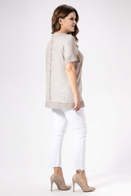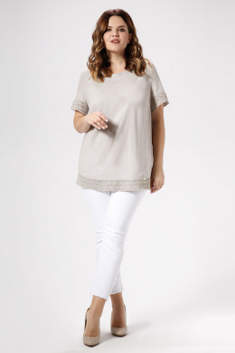 Лаконичная блузка из натуральной ткани дополнено изящным хлопковым кружевом. Блузка полуприлегающего силуэта, с круглым вырезом горловины, с короткими рукавами. По спинки декоративная застежка с пуговицами. Блузка дополнена натуральным хлопковым кружевом по низу и по рукавам. Отличный вариант для любого светского мероприятия.