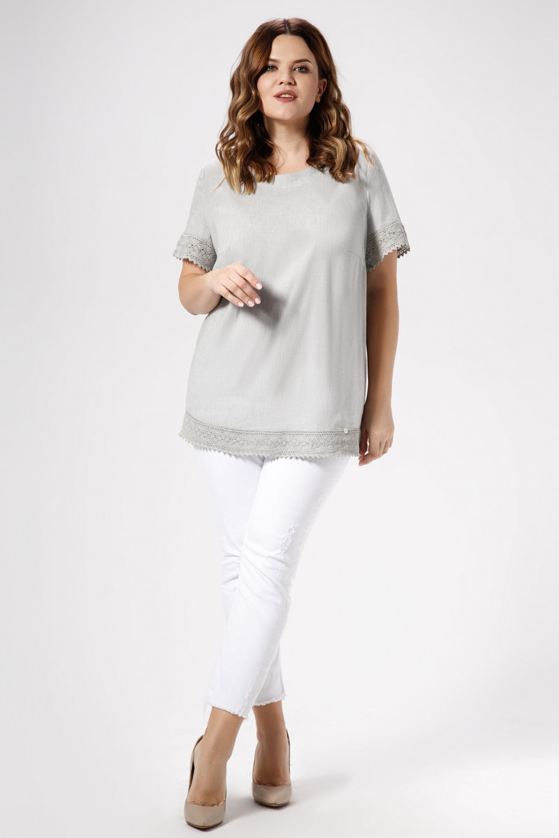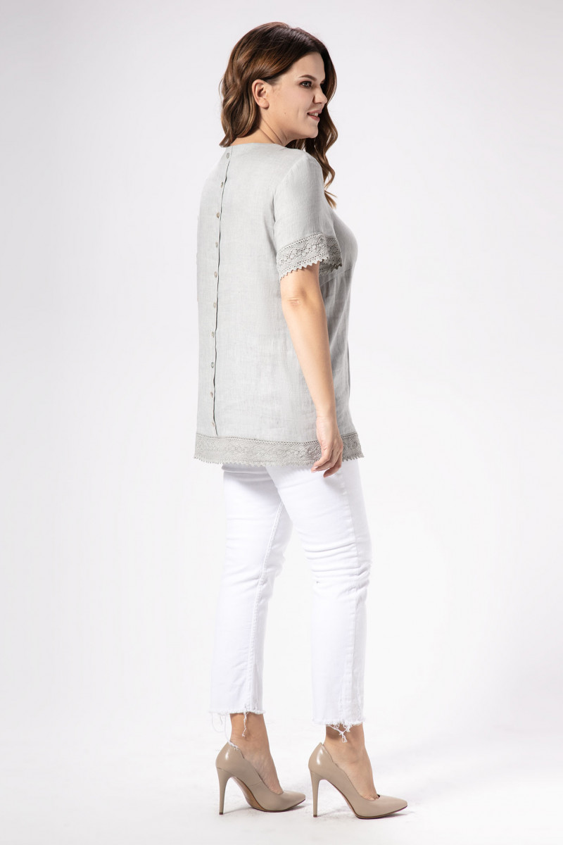 Лаконичная блузка из натуральной ткани дополнено изящным хлопковым кружевом. Блузка полуприлегающего силуэта, с круглым вырезом горловины, с короткими рукавами. По спинки декоративная застежка с пуговицами. Блузка дополнена натуральным хлопковым кружевом по низу и по рукавам. Отличный вариант для любого светского мероприятия.