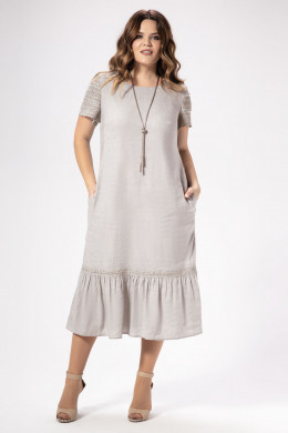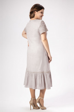 Лаконичное платье из натуральной льняной ткани дополнено изящным хлопковым кружевом. Платье полуприлегающего силуэта, длиной ниже коленей, по переду вытачки, в боковых швах карманы. По низу широкий волан. Рукава короткие, декорированы хлопковым кружевом. Платье на натуральной подкладки. Отличный вариант для любого светского мероприятия.