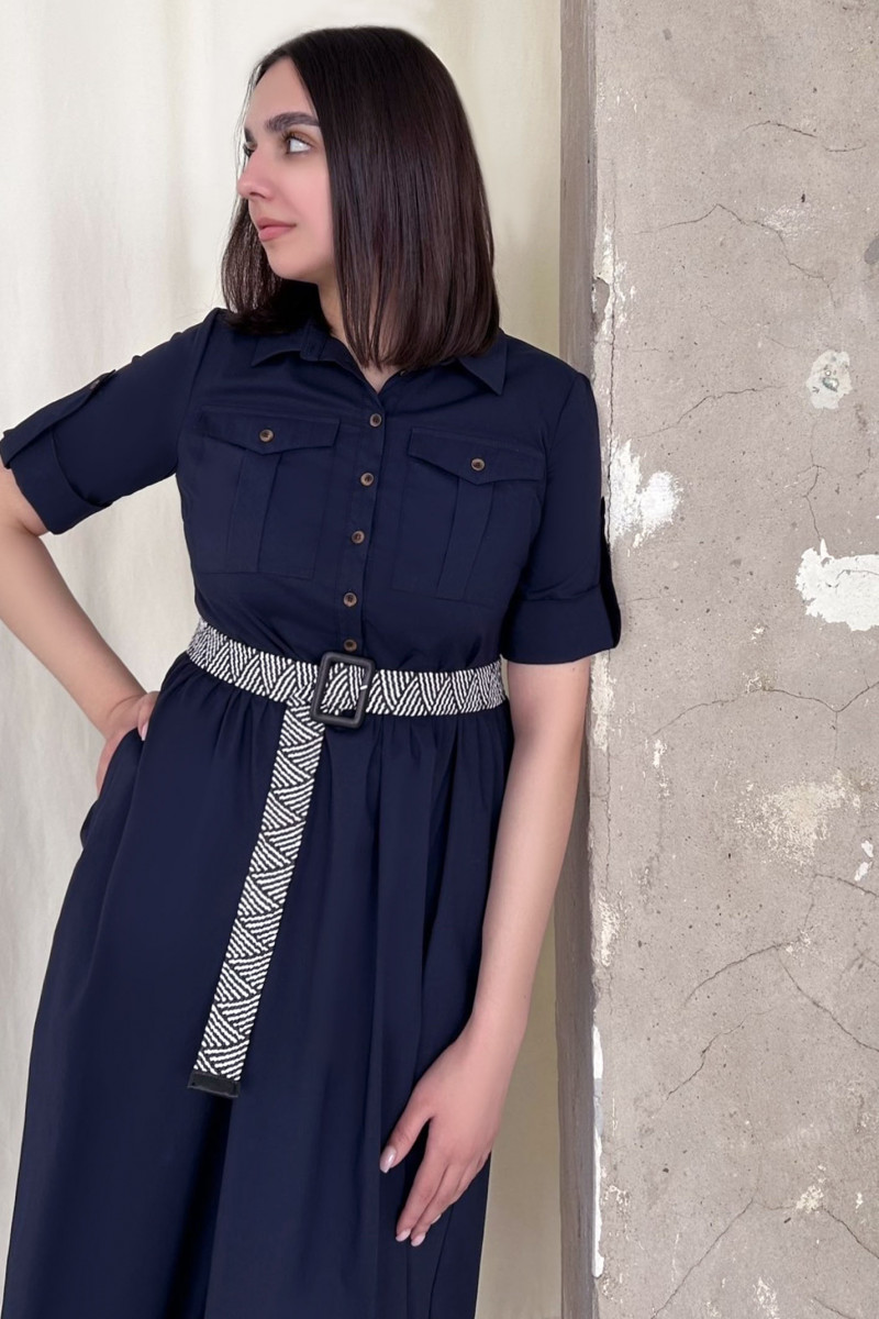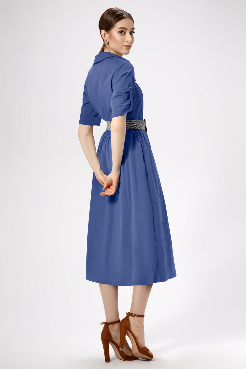 Платье миди – модная модель сезона, которая вашу фигуру стройнее, благодаря приталенному силуэту и ремешку. Платье с воротником рубашечного типа, нагрудными и прорезными боковыми карманами смотрится стильно, лаконично. Рукава с манжетами и патами открывают изящные линии рук. Платье рубашка из хлопкового полотна – мягкое, приятное на ощупь. Оно отлично отводит влагу, пропускает воздух, не сминается. Вы можете купить женское платье в комплекте с красивым съемным декоративным поясом.