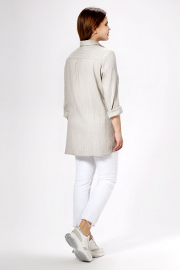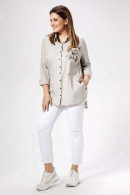 Стильная льняная рубашка выполнена из натурального льняного полотна с добавлением эластана. Воротник отложной на стойке. Застёжка спереди на планку с петлями и пуговицами.Рукав втачной,рлинный с манжетом по низу,застёгивающимся на две петли и пуговицы. По переду оформлены крупные накладныекарманы с косыми боковымыми входами. Также на уровне груди выполнен накладной карман ,декорированный цветочным принтом.По спинке выполнена отрезная кокетка. Основная деталь спинки присборена по верхнему срезу. В боковых швах рубашки выполнены разрезы. Задняя часть длиннее передней. Идеальная летняя рубашка на каждый день для активной ,модной девушки.