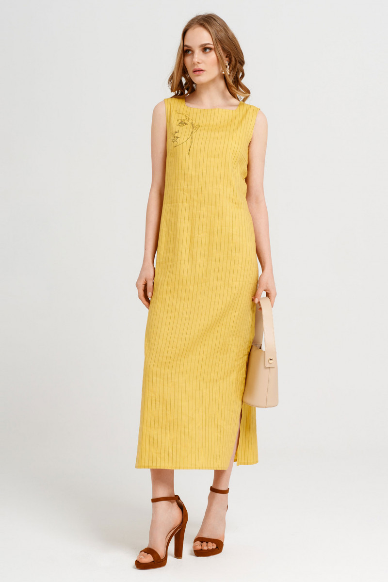 Стильное летнее платье расчитано на жаркую погоду.Оно выполнено в эко-стиле из натуральной льняной ткани с добавлением эластана. Платье длинное,без рукавов ,трапецевидного силуэта,с разрезами по бокам.Спереди выполнен изящный, графичный, современный принт. По спинке в области талии платье чуть присборено на широкую резинку,что делает силуэт более изящным и женственным. Лаконичный силуэт и крой платья выглядят очень современно . Изделие выглядит стильно и при этом очень удобно.Идеальный вариант на каждый день для модной и энергичной девушки.