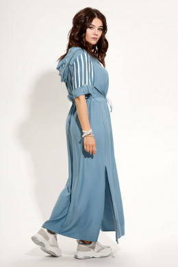 Молодёжное длинное платье из лёгкой вискозной ткани. Платье прямого силуэта, с капюшоном. Рукава втачные короткие, низ рукавов с отложными манжетами и декоративными патами. Застежкна на планку по переду с петлями и пуговицами. На левой части переда карман с яркой декоративной печатью, также декоративная печать нанесена и на капюшон. По бокам удобные карманы и разрезы. По талии имеется кулиса, которая позволяет подчеркнуть талию, если кому необходимо. Платье без подкладки. Легкое воздушное платье отличный вариант для жаркого летнего отдыха.