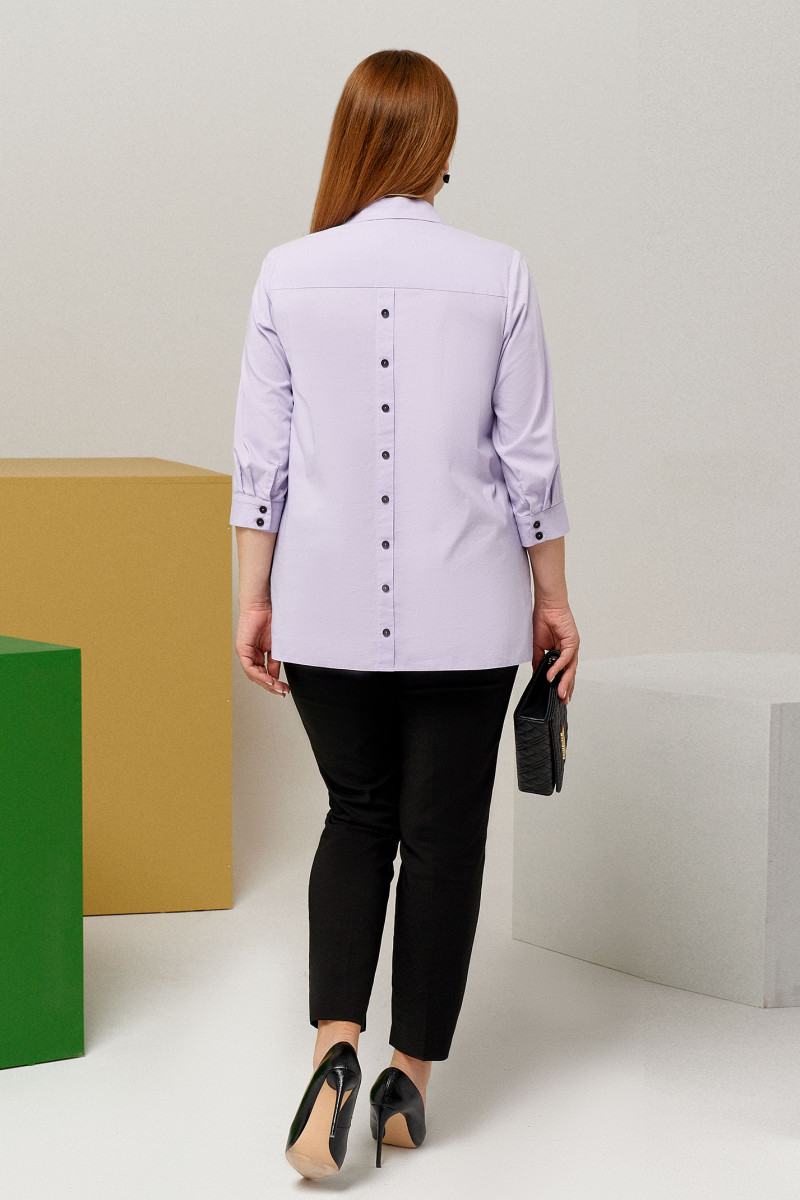 Стильная молодежная блузка отличный вариант как для офиса, так и на каждый день. Блузка полуприлегающего силуэта слегка расширенная к низу, по бокам имеются небольшие разрезы. Блузка с центральной сквозной застежкой на потайные петли и пуговицы и одну декоративную пуговицу на стойке воротника. По переду имеются нагрудные вытачки, по спинке имеется кокетка, от кокетки - декоративная планка с пуговицами. Рукава длиной с манжетами. На манжетах имеются декоративные петли и пуговицы. Такая блузка отлично сочетается с различными брюками и джинсами создавая стильный современный образ.