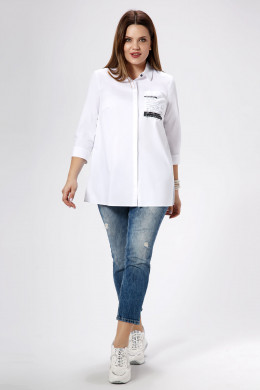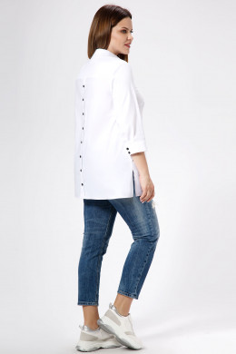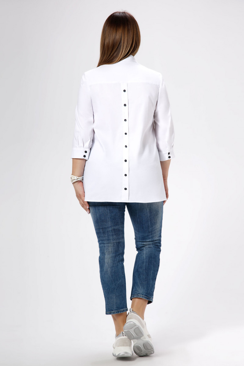 Стильная молодежная блузка отличный вариант как для офиса, так и на каждый день. Блузка полуприлегающего силуэта слегка расширенная к низу, по бокам имеются небольшие разрезы. Блузка с центральной сквозной застежкой на потайные петли и пуговицы и одну декоративную пуговицу на стойке воротника. По переду имеются нагрудные вытачки, по спинке имеется кокетка, от кокетки - декоративная планка с пуговицами. Рукава длиной с манжетами. На манжетах имеются декоративные петли и пуговицы. Такая блузка отлично сочетается с различными брюками и джинсами создавая стильный современный образ.