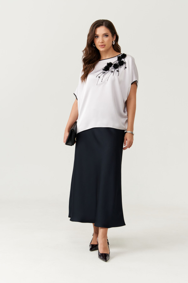 Стильная блузка, из хлопковой ткани, полуприлегающего силуэта, от горловины стойка переходящяя в широкие планки, которые завязываются в бант и является ярким акцентом, линия низа фигурной формы, в боковых швах разрезы, Спинка лаконичная, Руква 7/8 к низу расширенные на притачной манжете. Разнообразить лук помогут яркие аксессуары. Шикарный образ, как по случаю так и без него.