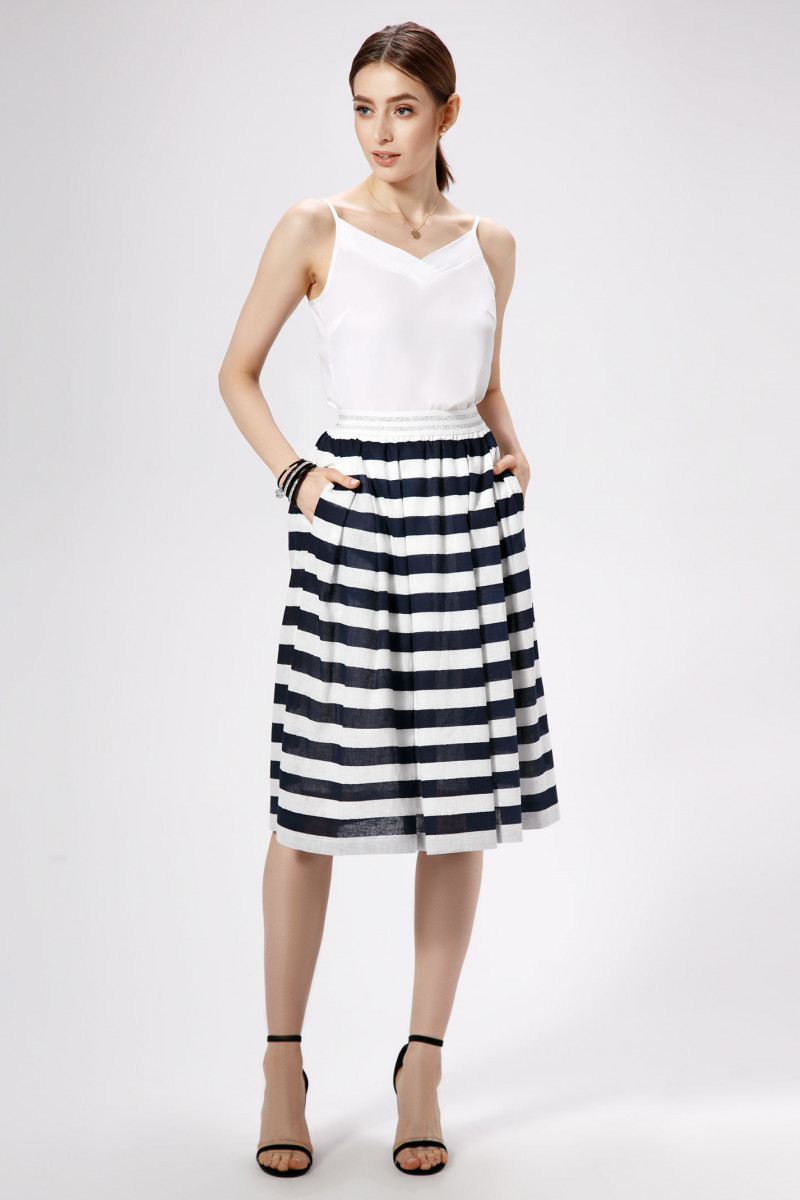 Прекрасная стильная юбка на хлопковой подкладке ,выполненная из тонкого и мягкого льняного полотна ,непременно украсит ваше лето и подарит чудное настроение. Юбка на поясе-резинке,что очень комфортно и актуально. Переднее полотнище юбки по верхнему срезу образует складки,а по заднему-сборку.Модная длина-миди безупречна. В боковых швах оформлены одобные глубокие карманы. Прекрасный вариант стильной юбки на каждый день и для отдыха ,который придётся по душе девушке,которая ценит в одежде стиль, комфорт и качество.