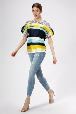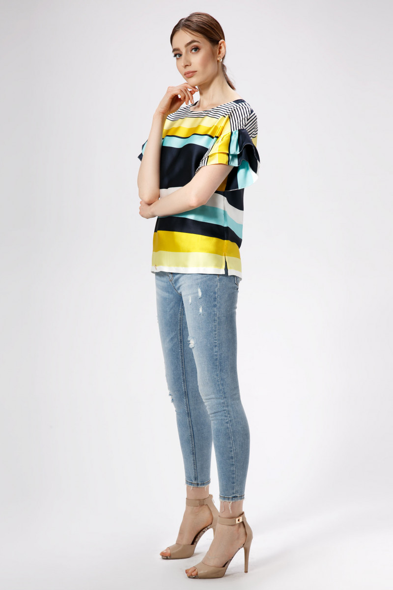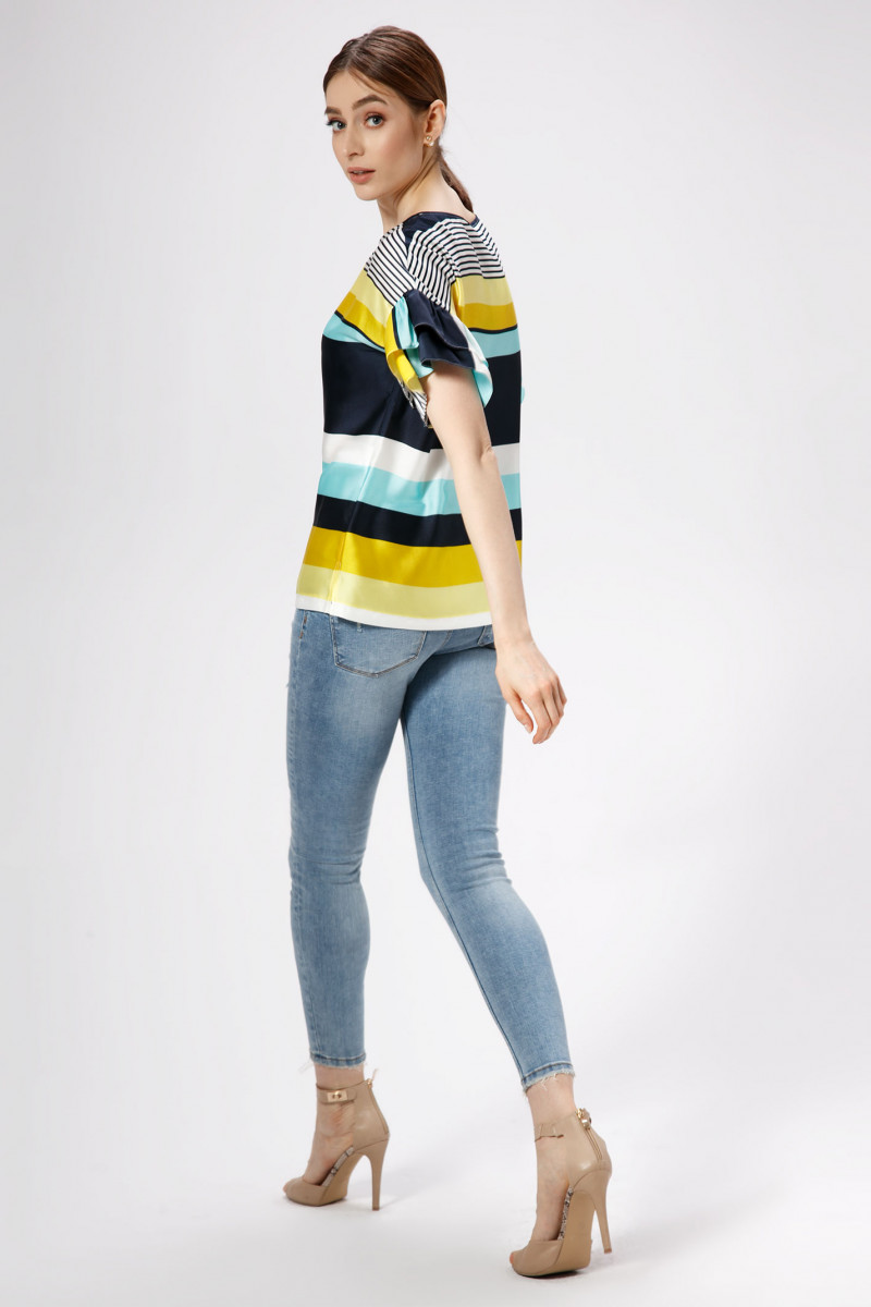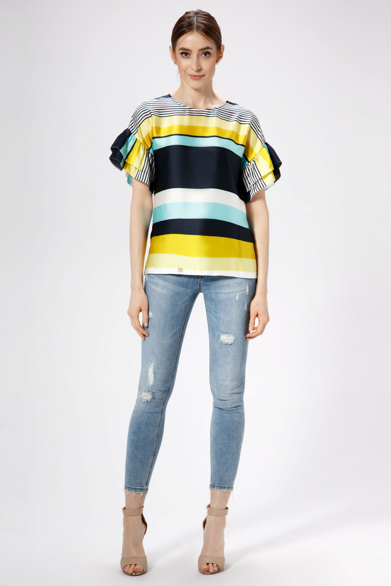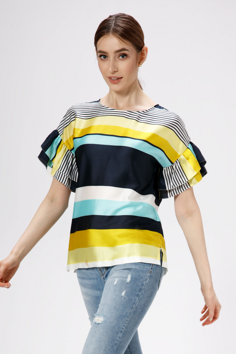 Эффектная, романтичная блузка, рисунок в полоску, прямого силуэта , горловина круглой формы, линия плеча спущенная, акцент сделан на воланы по рукавам. Спинка лаконичная. Отличный вариант как по случаю, так и без него, аккуратные линии кроя, в минималистичном стиле- и вы выглядите лаконично и стильно.