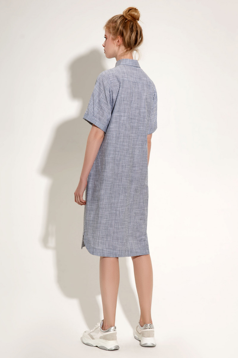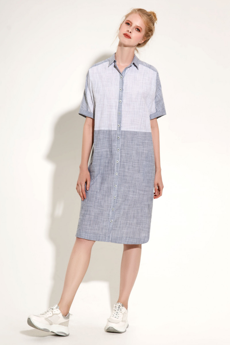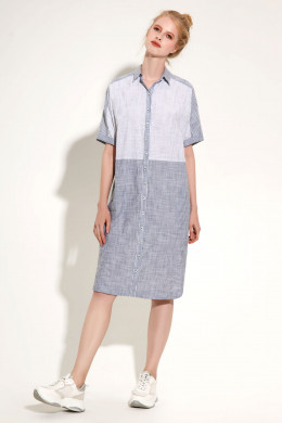 Невесомое летнее хлопковое платье-рубашка ,выполненное из двух расцветок полотна в полоску,придётся по душе стильным девушкам,которые хотят всегда выглядеть прекрасно и при этом не жертвовать своим комфортом. Такое платье будет чудесным вариантом на каждый день для работы и на прогулку.Прямой силуэт и цельнокроёные рукава обеспечивают свободу движений.Рукав до локтя с притачным манжетом по низу.Воротник рубашечный. Застёжка спереди на центральной планке на петли и пуговицы. Удобные карманы в боковых швах,комфортная длина платья ,чуть выше колена,всё продуманно максимально,чтобы порадовать счастливую обладательицу этого платья.