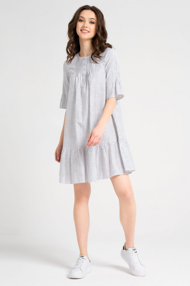 Стильное молодёжное платье из хлопкового полотна имеет очень актуальный трапецевидный силуэт и максимально комфортно при эксплуатации. Оно выгодно подчёркивает достоинства фигуры,скрывая при этом недостатки. Вырез горловины круглый .От горловины выполнена планка -застёжка с петлями и пуговицами. Вдоль планки оформлены отстроченные защипы. По низу платья выполнен притачной валан,придающий образу женственность. Рукава втачные.От оката также выполнены недлинные отстроченные защипы.Книзу рукав образует валан.Стильное и модное платье летящего силуэта наверняка порадует свою яркую обладательницу на отдыхе и как вариант на каждый день.