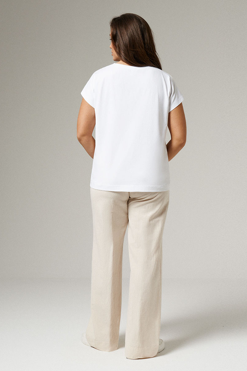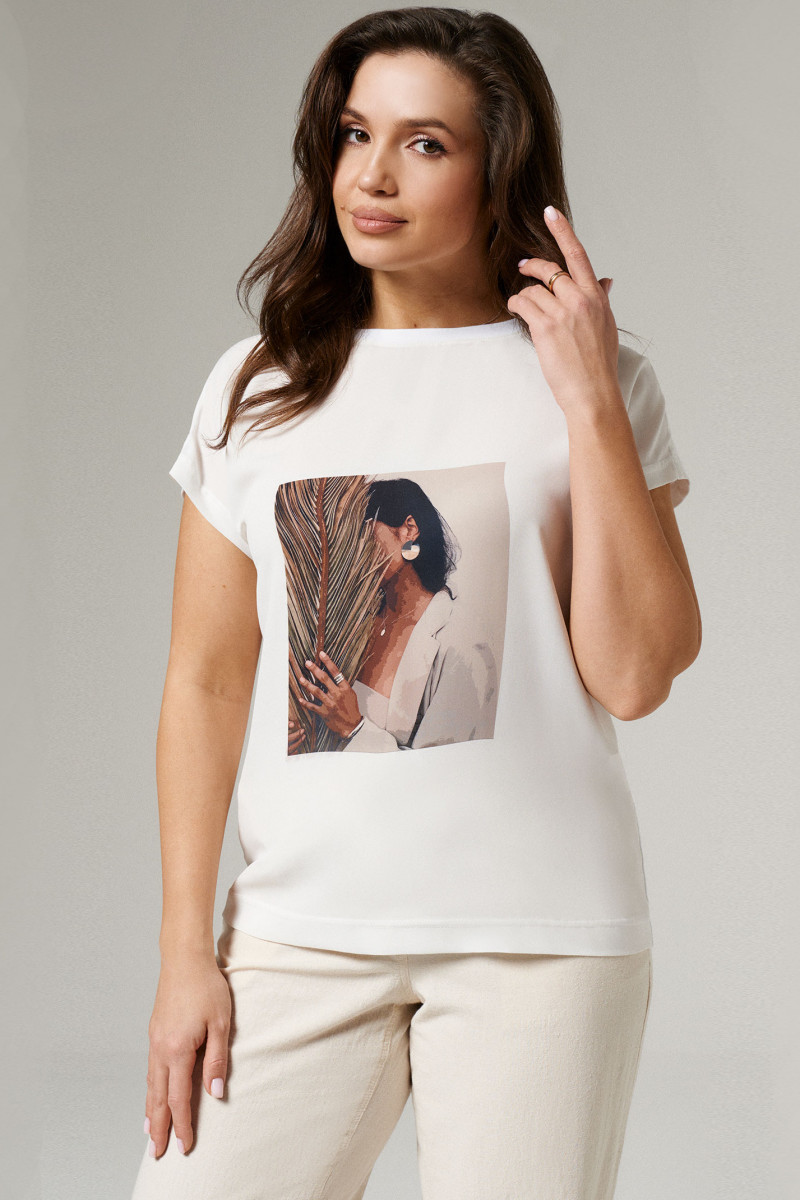 Женская блузка с принтом легко станет акцентной деталью созданного вами летнего образа. В данной блузке перед из лёгкой струящейся ткани, а спинка из приятного на ощупь хлопкового трикотажа, максимально пропускающего воздух к телу и обеспечивающего комфортные ощущения. Летняя блузка женская прямого кроя спереди украшена по центру дизайнерской печатью. Вырез горловины – круглый. обработан бейкой из трикотажа. Линия плеча слегка спущена. Без рукавов. Она превосходно комбинируется с брюками, джинсами, юбками, шортами. Предлагаем вам купить красивую женскую блузку по приемлемой стоимости.