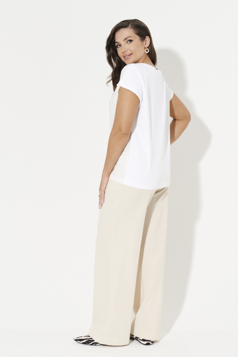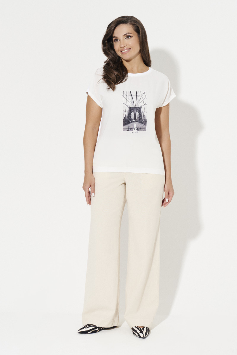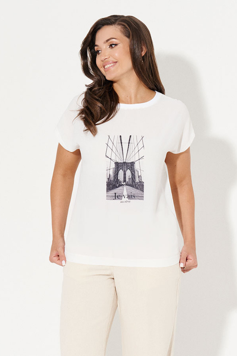 Женская блузка с принтом легко станет акцентной деталью созданного вами летнего образа. В данной блузке перед из лёгкой струящейся ткани, а спинка из приятного на ощупь хлопкового трикотажа, максимально пропускающего воздух к телу и обеспечивающего комфортные ощущения. Летняя блузка женская прямого кроя спереди украшена по центру дизайнерской печатью. Вырез горловины – круглый, обработан бейкой из трикотажа. Линия плеча слегка спущена. Без рукавов. Она превосходно комбинируется с брюками, джинсами, юбками, шортами. Предлагаем вам купить красивую женскую блузку по приемлемой стоимости.